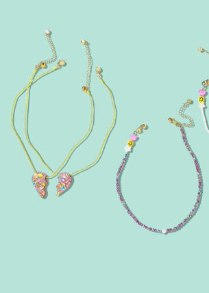 Split the love with your bestie! This adorable two-piece necklace set features matching heart halves that come together when you're side by side. Perfect for tweens and girls who want to show their friendship in style, each necklace holds one half of the heart, creating a sweet symbol of your unbreakable bond. Wear them separately or together—either way, you're celebrating the friendship that matters most. A fun, meaningful accessory that says "you're my person!"