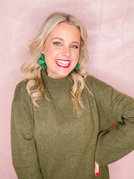 Style Description: * 2.4-inch length for a dramatic presence * Green-coated or Red-coated zinc alloy design Where to Wear: * Spring Weddings: Adds a refreshing pop of color to bridal or guest looks. * Cocktail Parties: Striking green shimmer that stands out under evening lights. * Holiday Gatherings: A festive choice with year-round versatility.