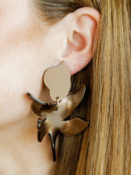 Rich and radiant, Flora Statement Earrings in Espresso bring warmth and shimmer to any outfit. These oversized 80mm floral earrings feature a metallic brown hue with a beautiful espresso-toned shimmer, creating a bold yet sophisticated look. Crafted from eco-friendly acetate with surgical-grade stainless-steel posts, they’re lightweight, hypoallergenic, and safe for sensitive ears—perfect for all-day comfort. A true statement piece, these earrings effortlessly balance elegance with drama, making them a go-to for standout style.