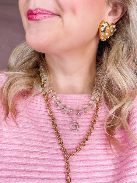 Soft, sweet, and effortlessly chic — the Frosted Blush Necklace is all about understated glamour. Featuring a delicate mix of frosted pink and milky white beads accented with gleaming gold spacers, this beauty is made to add a hint of elegance to your everyday. Lightweight, feminine, the Frosted Blush is a necklace that goes with everything (and makes it better).