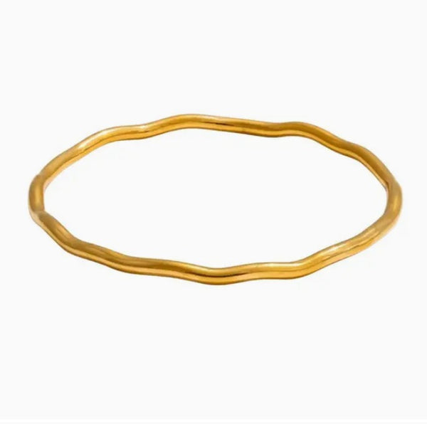 The Halo Gold Bangle Bracelet from Hjane Jewels is an 18k gold-plated stainless steel piece that reflects our commitment to quality and style. The Halo Gold Bangle Bracelet is waterproof and goes great stacked with colorful bracelets or simple gold ones like the tennis bracelet and Ella Bangle!