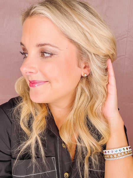 Meet our Millie Studs from Hjane Jewels. These 18k gold-plated stainless steel, waterproof studs are more than just accessories. They're designed to offer durability and shine that lasts. Our jewelry is tested for quality and durability, ensuring that each piece is made to last. Add a touch of luxury to any outfit with our Millie Studs.