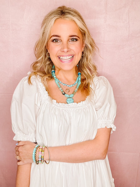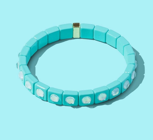 Brighten up your arm stack with the Maeve in turquoise! Perfect for stacking or wearing solo, this colorful enamel and stone bracelets is the ultimate accessory to add sparkle to any outfit.